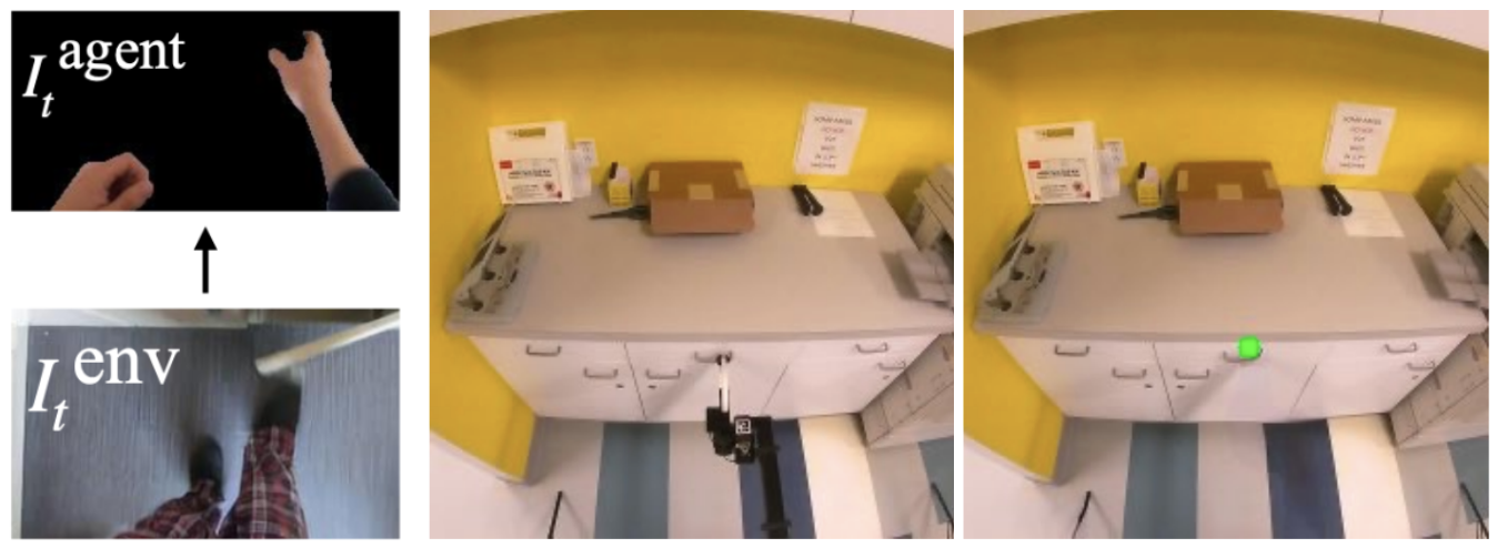 Learning reward functions from egocentric video can be complicated by mismatch between the human hand and robot end-effector. New UIUC work proposes video inpainting via diffusion model (VIDM) to separate the agent and environment, using video to train Stretch to open drawers.